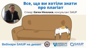 У процесі дистанційного навчання використання сучасних інформаційних технологій забезпечують гнучкість, модульність, інтерактивність та зручність під час здійснення освітнього процесу в університеті. В таких умовах пріоритетним завданням студентів і науково-педагогічних працівників є дотримання принципів чесності, справедливості, взаємної довіри, рівності, відповідальності та академічної свободи. Саме тому викладачі, студенти та співробітники нашого університету беруть активну участь у серії вебінарів з академічної доброчесності «Вебінари #SAIUP на дивані», ініційованому Проектом сприяння академічній доброчесності в Україні.