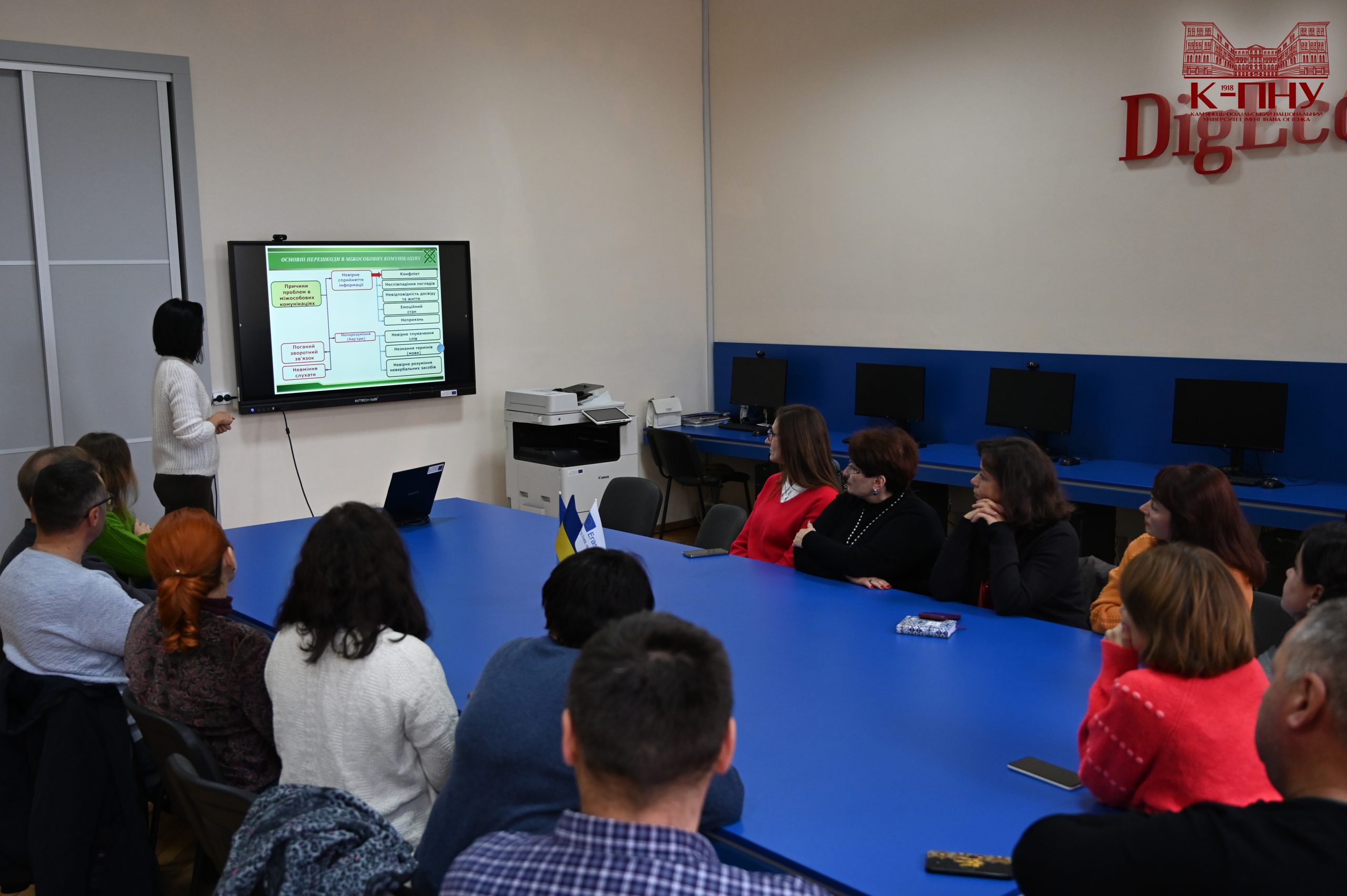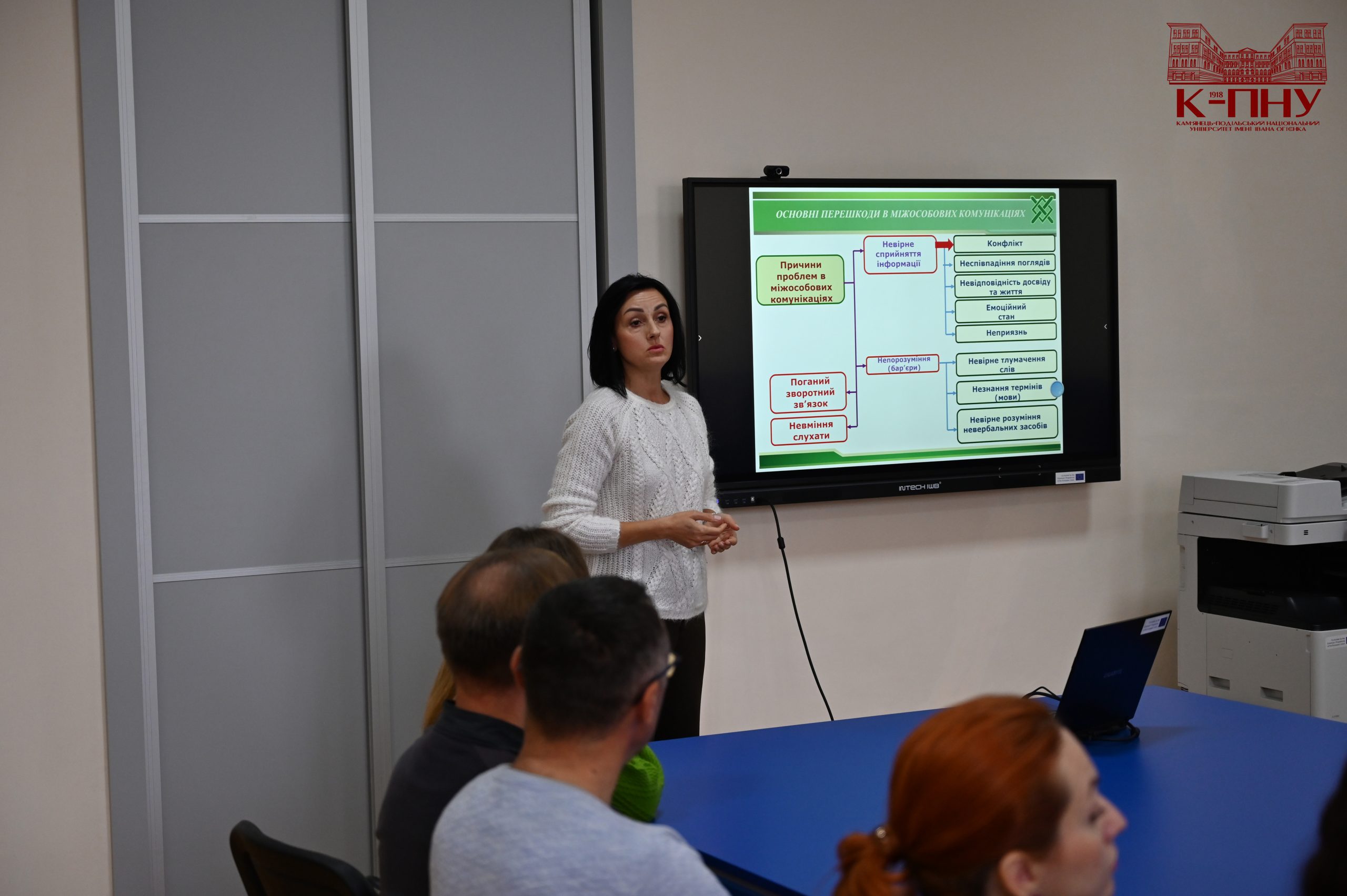 Спікерами заходу виступили Іван Семенець, кандидат економічних наук, доцент, декан природничо-економічного факультету, Тетяна Боднарчук, кандидат економічних наук, доцент, заступник декана з наукової роботи та міжнародних зв’язків, член Комісії з питань академічної доброчесності Університету, та Надія Олійник, кандидат педагогічних наук, доцент, доцент кафедри менеджменту, які представили учасникам кілька тематичних виступів. Зокрема, було акцентовано увагу на взаємозв’язку академічної доброчесності та корпоративної культури як основ етичної взаємодії у вищій школі (Тетяна Боднарчук); порушено питання етики комунікації та вирішення конфліктів в освітньому середовищі (Надія Олійник); наголошено на важливості організації ефективної взаємодії з особами з особливими освітніми потребами (Іван Семенець).