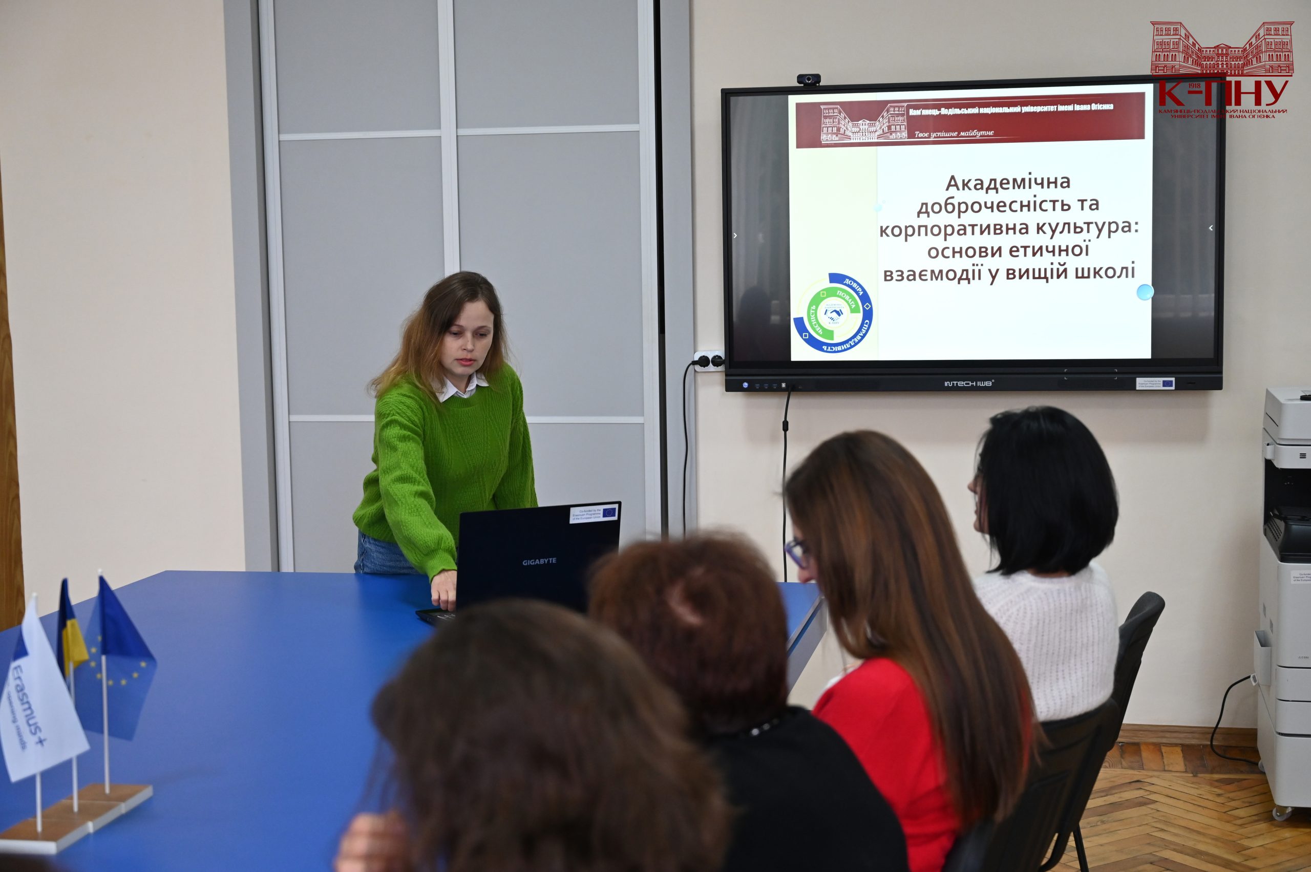 8 жовтня на природничо-економічному факультеті відбувся круглий стіл «Корпоративна етика як складова організаційної культури факультету». Захід об’єднав науково-педагогічних працівників, здобувачів вищої освіти та адміністрацію факультету для обговорення важливих питань дотримання норм етичної поведінки, взаємоповаги й академічної доброчесності в освітньому середовищі.